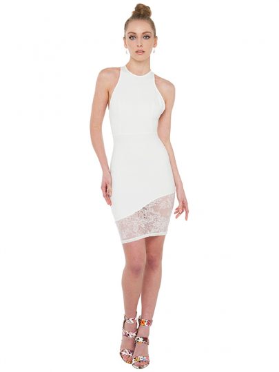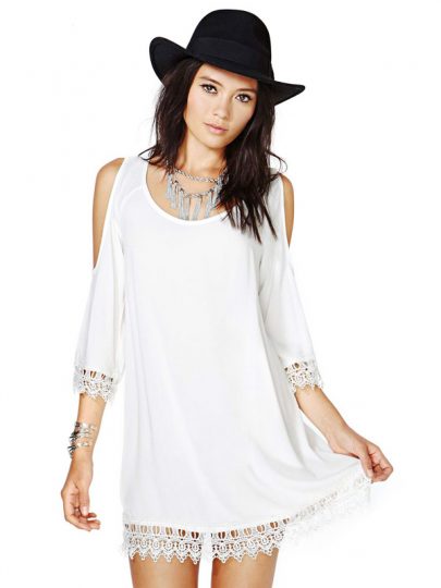 White Cold Shoulder Dress With Lace Hem