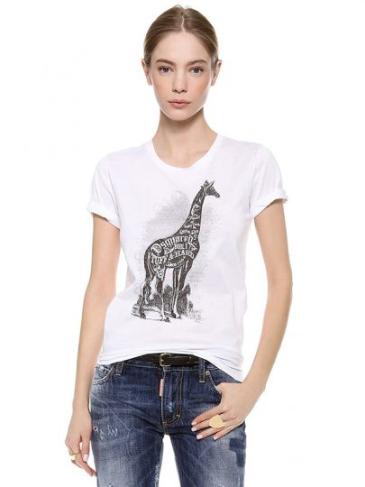 White Horse Print Boat Sleeve T-Shirt