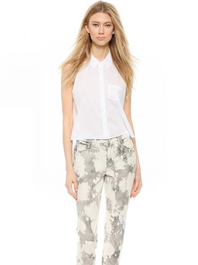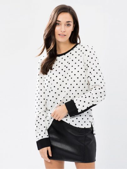 White Black Dot Tipping Round Neck Shirt