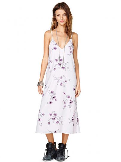 White Floral Spaghetti Strap Dress