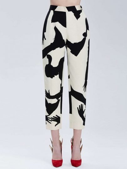 White Black Colourblock Abstract Print Side Split Pants