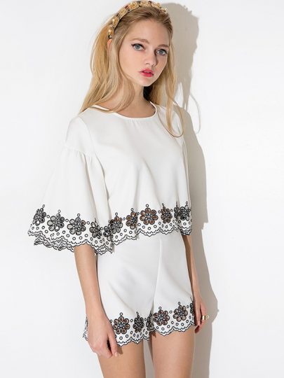 White Embroidery Cut Out Shorts