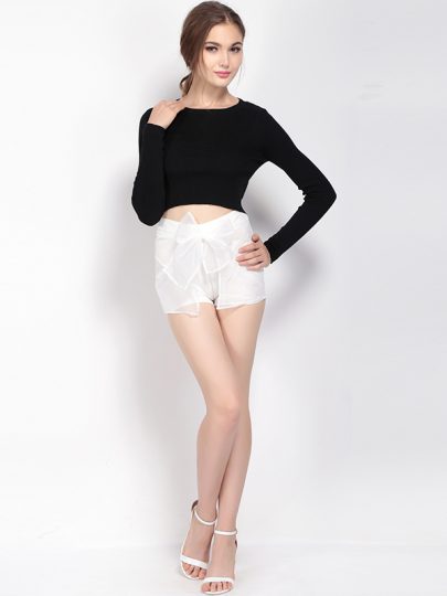 White Bowknot Organza Wide Leg Short