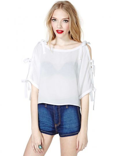 White Chiffon Batwing Knotted Petals Top