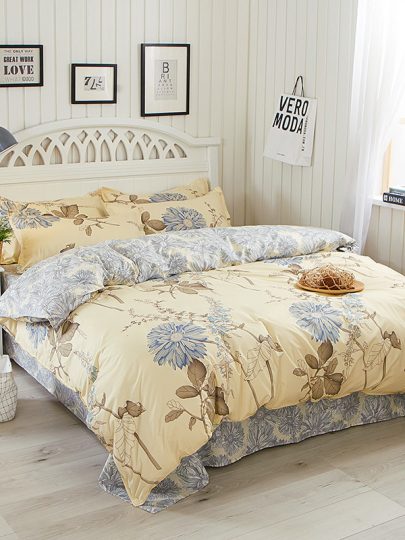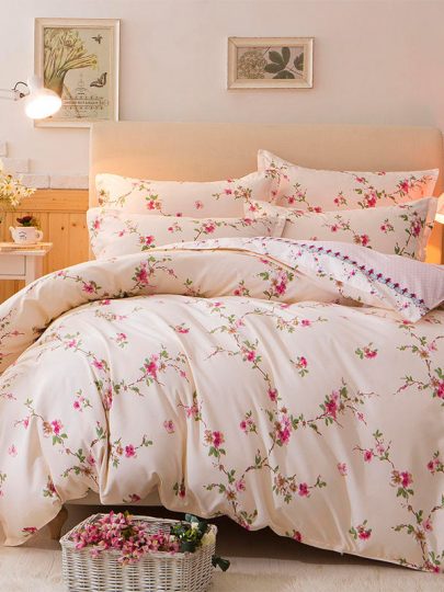 Vintage Patterned Locar Cotton Tencel Satin Four Piece Set