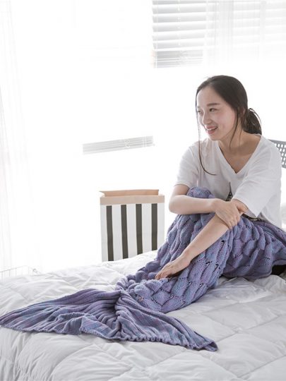 Purple Mermaid tail knit blanket