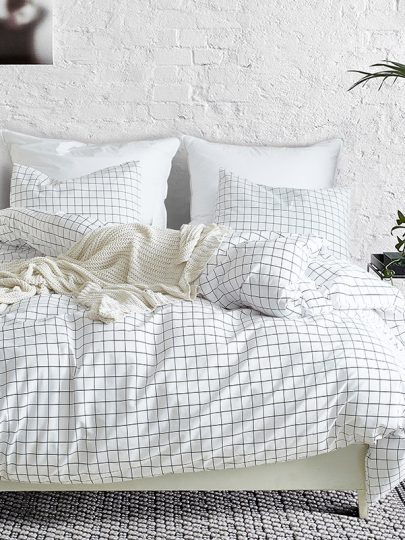 Simple atmospheric white plaid sanding print three-piece