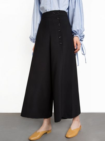 Commuter OL Plaid High Waist Strap Wide Leg Pants