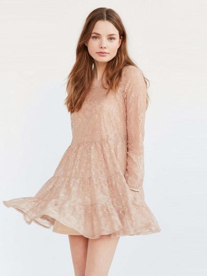 White See-through Frill Sleeve Lace Hem Mini Dress