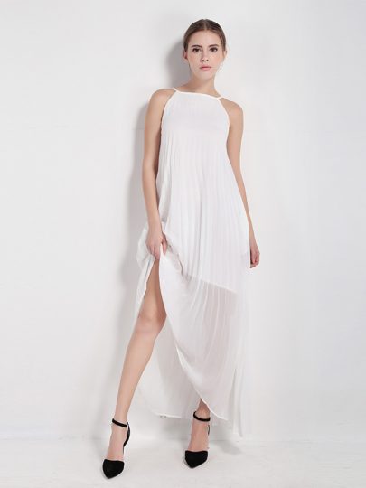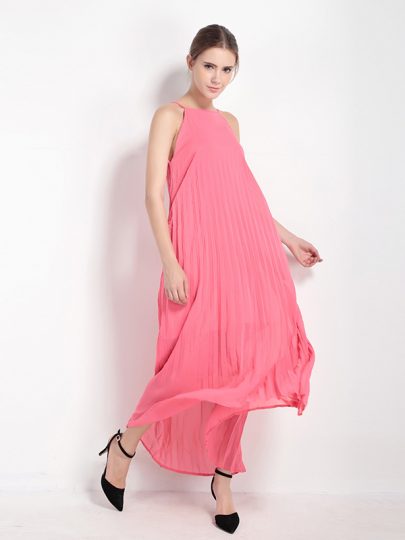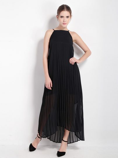 Halter Neck Chiffon Pleated Longline Dress