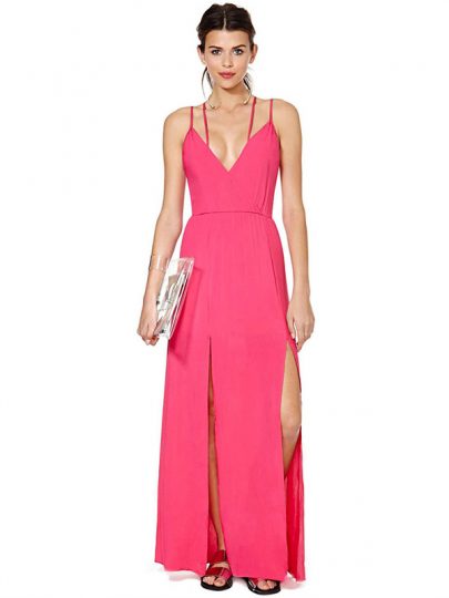 Pink Split Front Back Stripe Maxi Dress