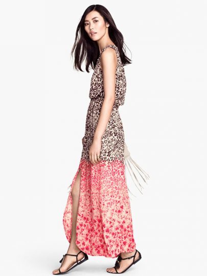 Brown/Red Color Block Leopard Print Maxi Dress