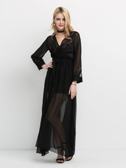 Mesh Tie Waist Maxi Dress