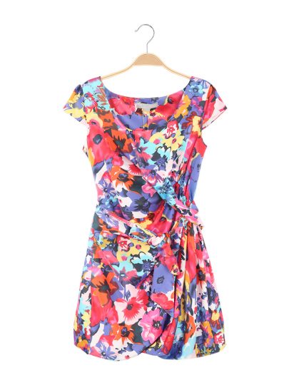 Light Blue Floral-Cuckoo Print Backless Sleeveless Mini Dress