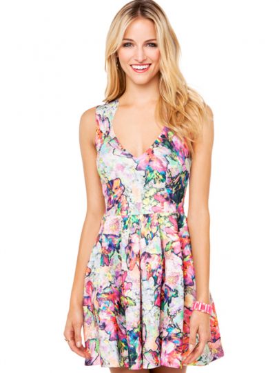 Multicolor Tie-dyed Plunge Neck Sleeveless Dress