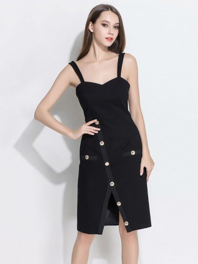 Black Cut Away Mini Spaghetti Strap Skater Dress