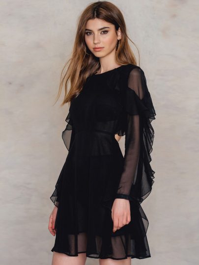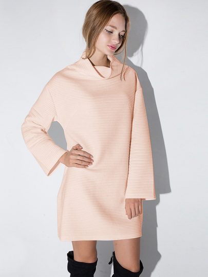 Pink Wrap Plunge Neck Long Sleeve Dress