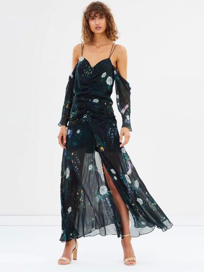 Sexy sling pleated off-shoulder printed split dress