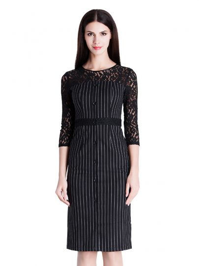 Lace stitching striped slim dress