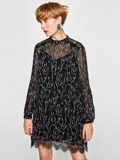 High Neck Lace Long Sleeve Dress