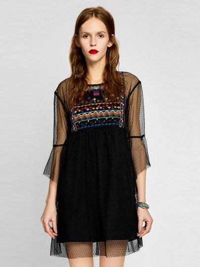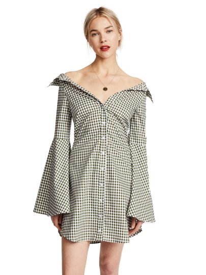 Sexy Lapel Off-Shoulder Plaid Flare Sleeve Dress