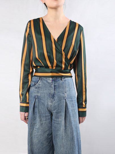 Kimono asymmetric stripe crop top