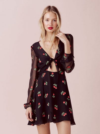 Lovely cherry printing flounce chiffon dress