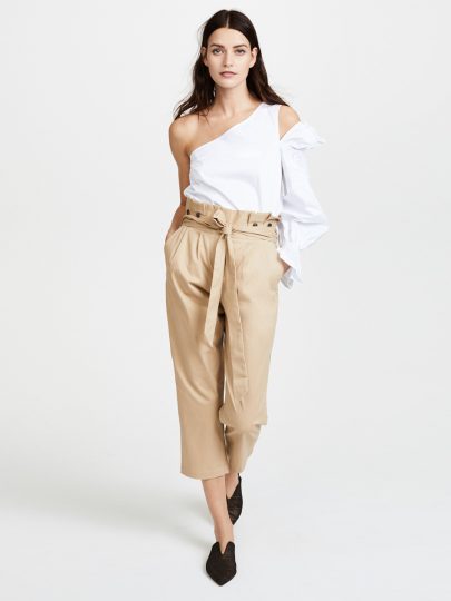 Sleek minimalist casual pleated button pants