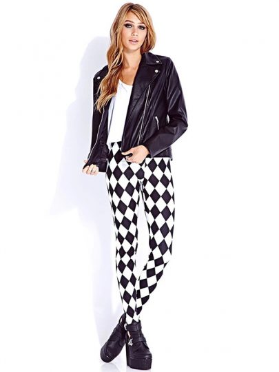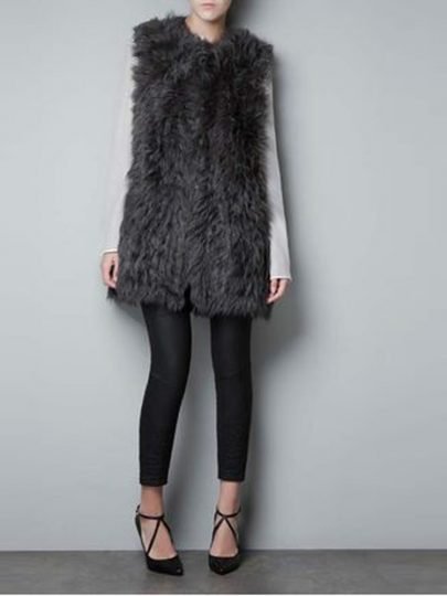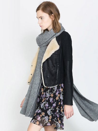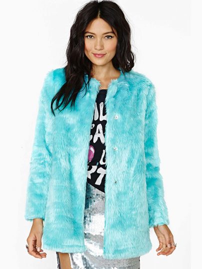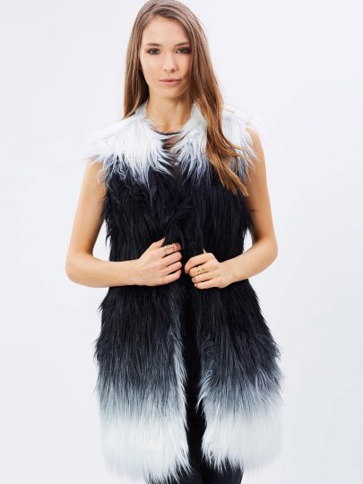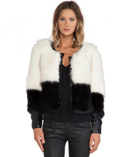 Black/White Colourblock Crew Neck Faux Fur Coat