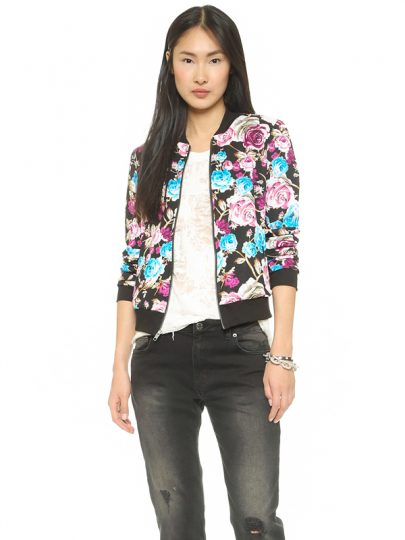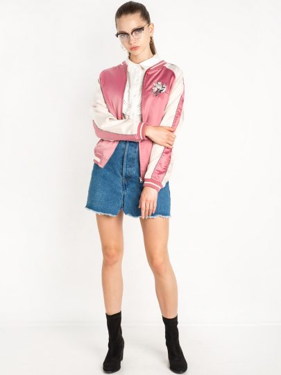 PINK FLORAL EMBROIDERED SATIN BOMBER JACKET