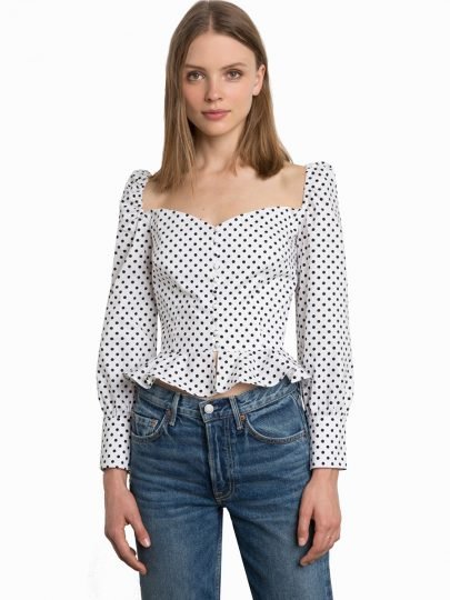 European and American fashion retro dot lotus leaf slim slimmed shirt