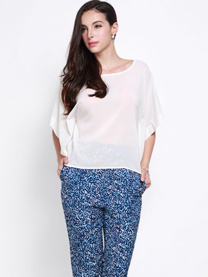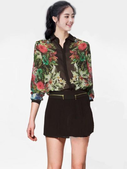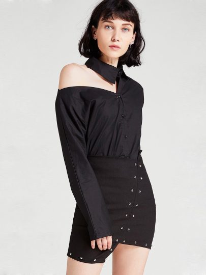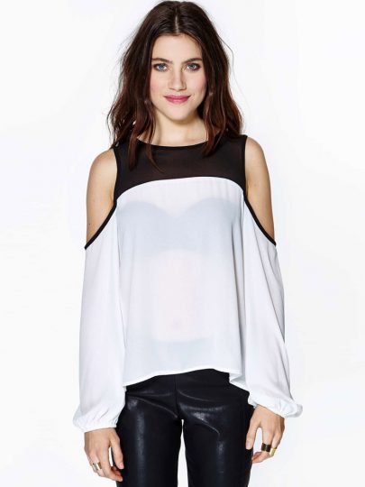 Colourblock Cold Shoulder See-through Chiffon Shirt