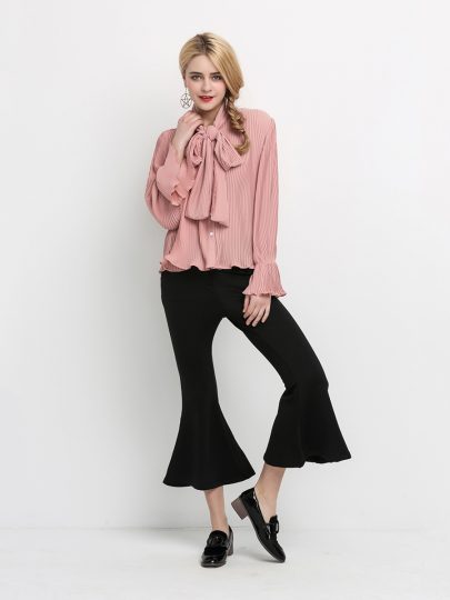 Pink Bowknot Tie Front Single-breasted Chiffon Blouse