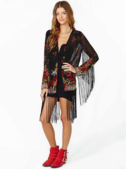 Fire rose knotted fringed chiffon shirt
