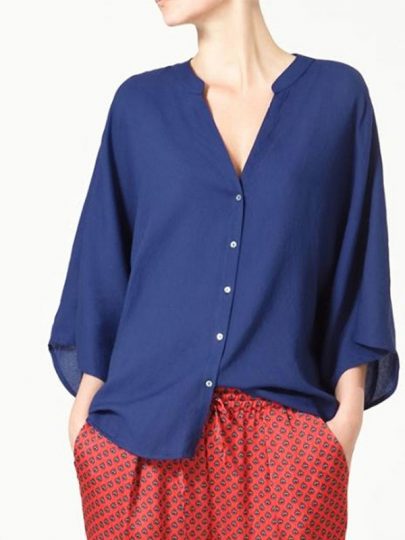 Sleek minimalist blue chiffon shirt