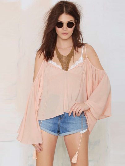 Sweet sexy pleated strap chiffon shirt