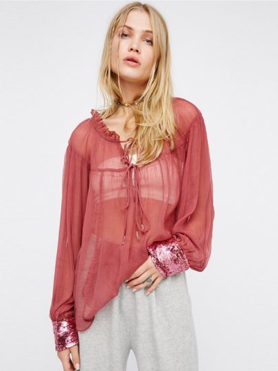 Sequins decorated ruffled chiffon shirt