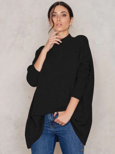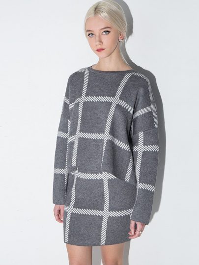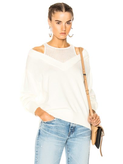Grey Jersey & Chiffon Pullover Sweatshirt