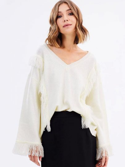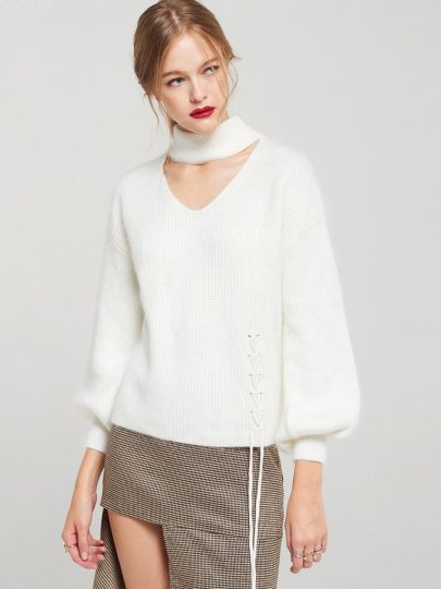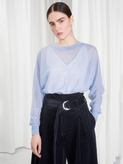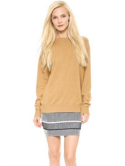 Khaki Sheer Mesh Contrast Back Loose Sweater