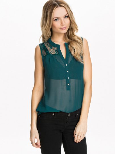 Sheer Lace Shoulder V-Neck Sleeveless Chiffon Top