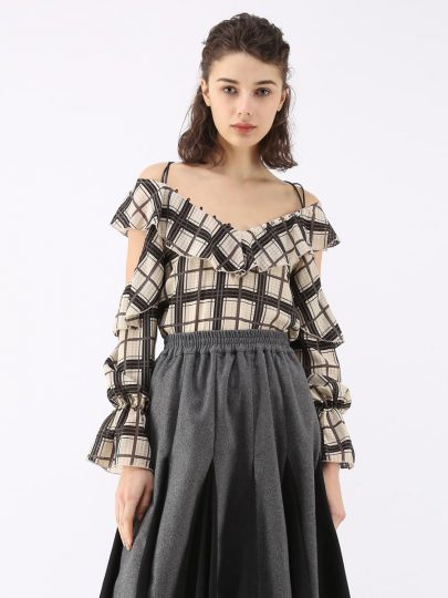 Sexy retro lotus leaf with solid long-sleeved Tops