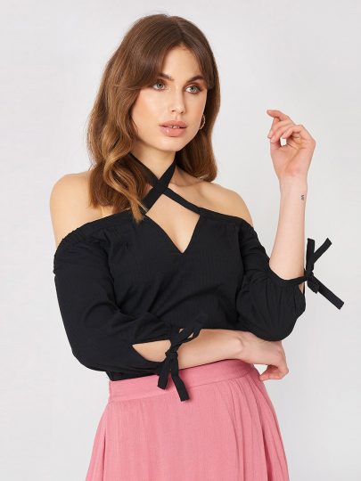 Be the first to review “Banner print side seam bow sleeveless vest”