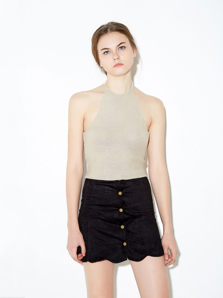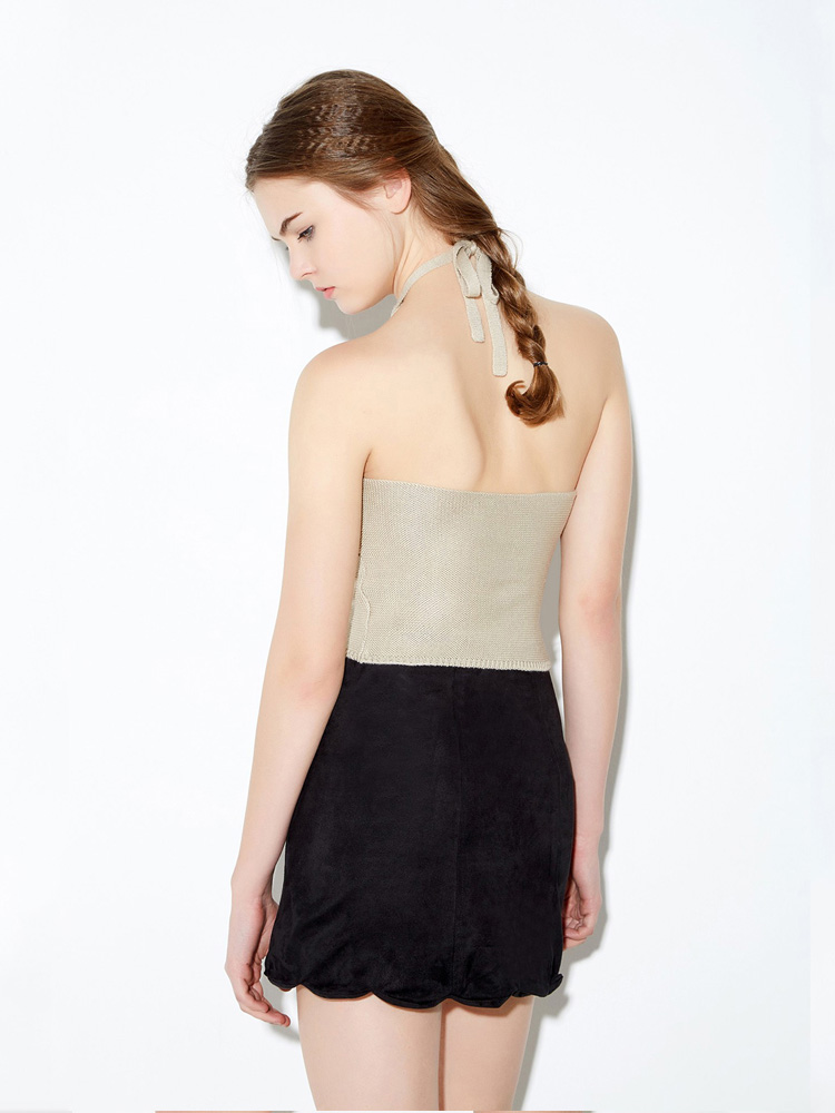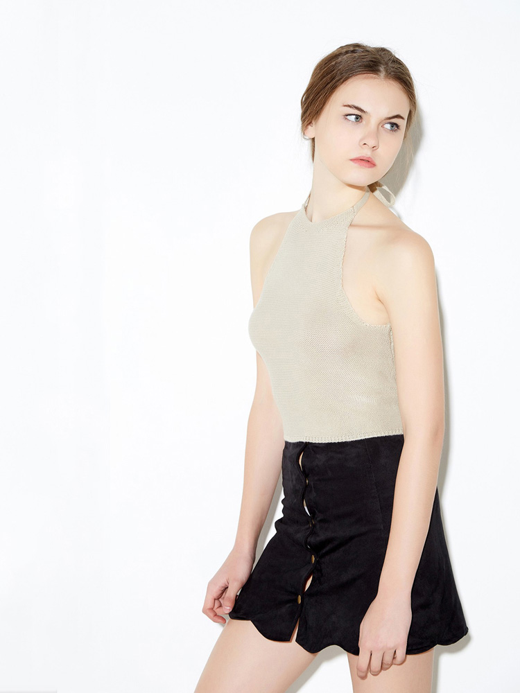Popular elements:Solid color halter strap/tie