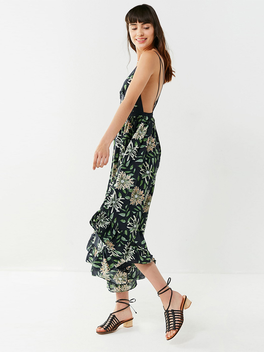 Popular elements:Splicing open back printed