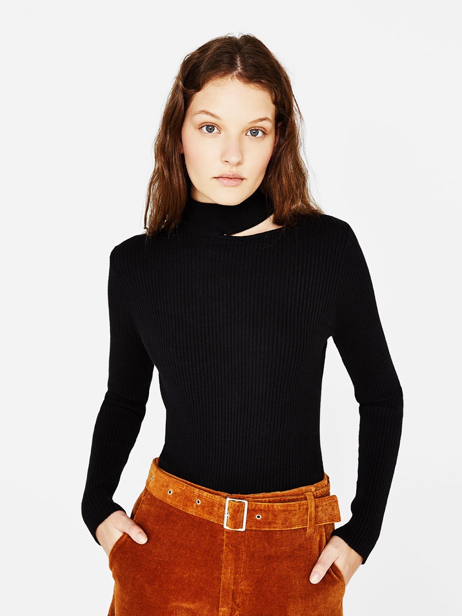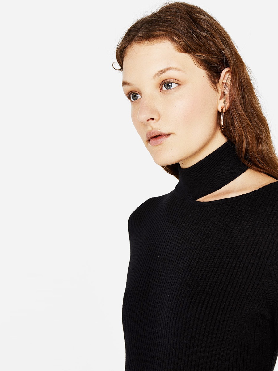 Brief high collar hollow out knit