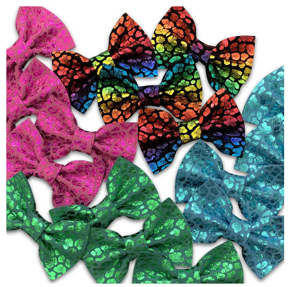 These genuine leather metallic cheetah print hair bows are so fabulous! They’ll match everything and make a fun statement.