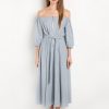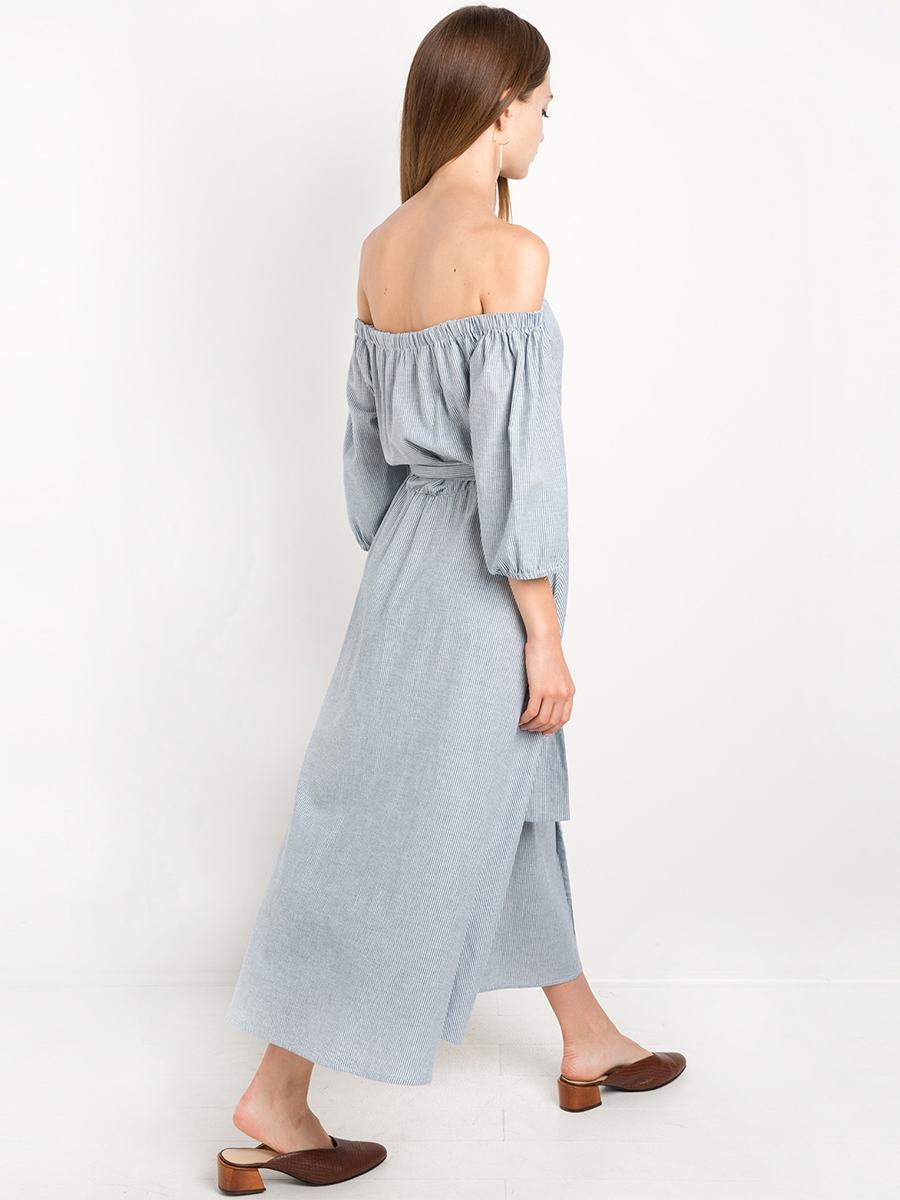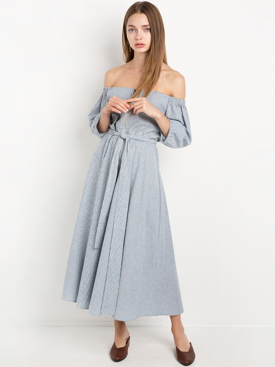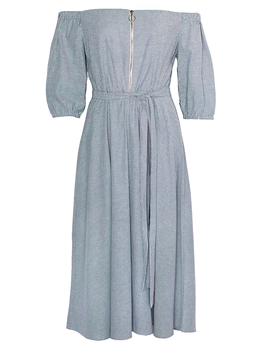 CINDY STRIPE OFF THE SHOULDER DRESS BY NEW REVIVAL
