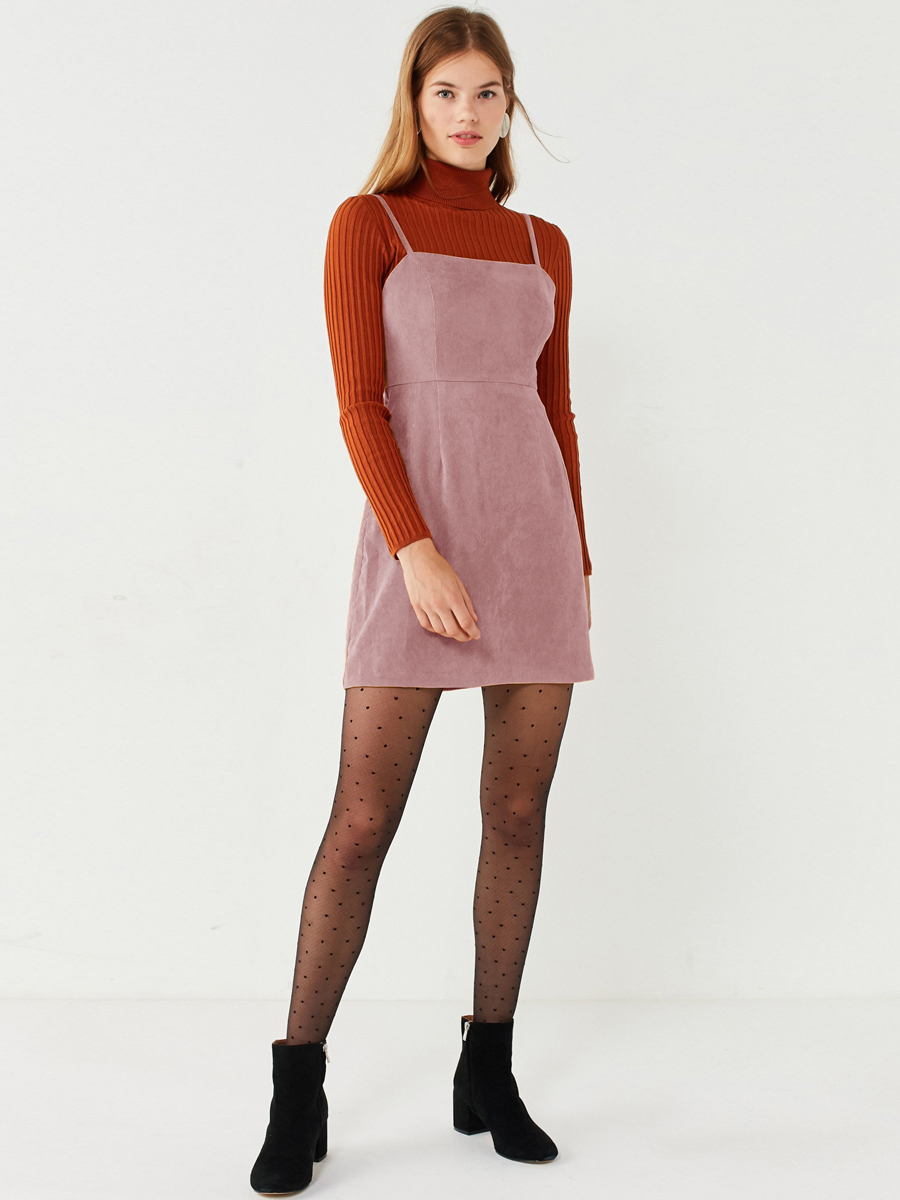 Corduroy high waist strap dress
