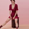 Deep V sweet print dress A word skirt