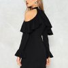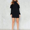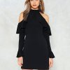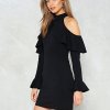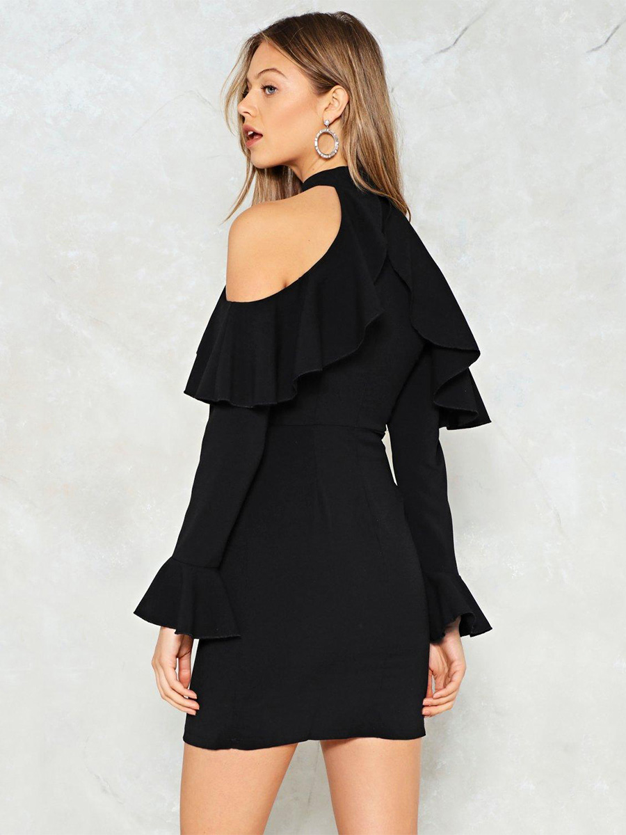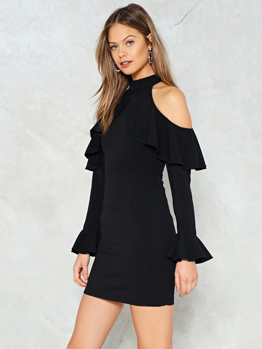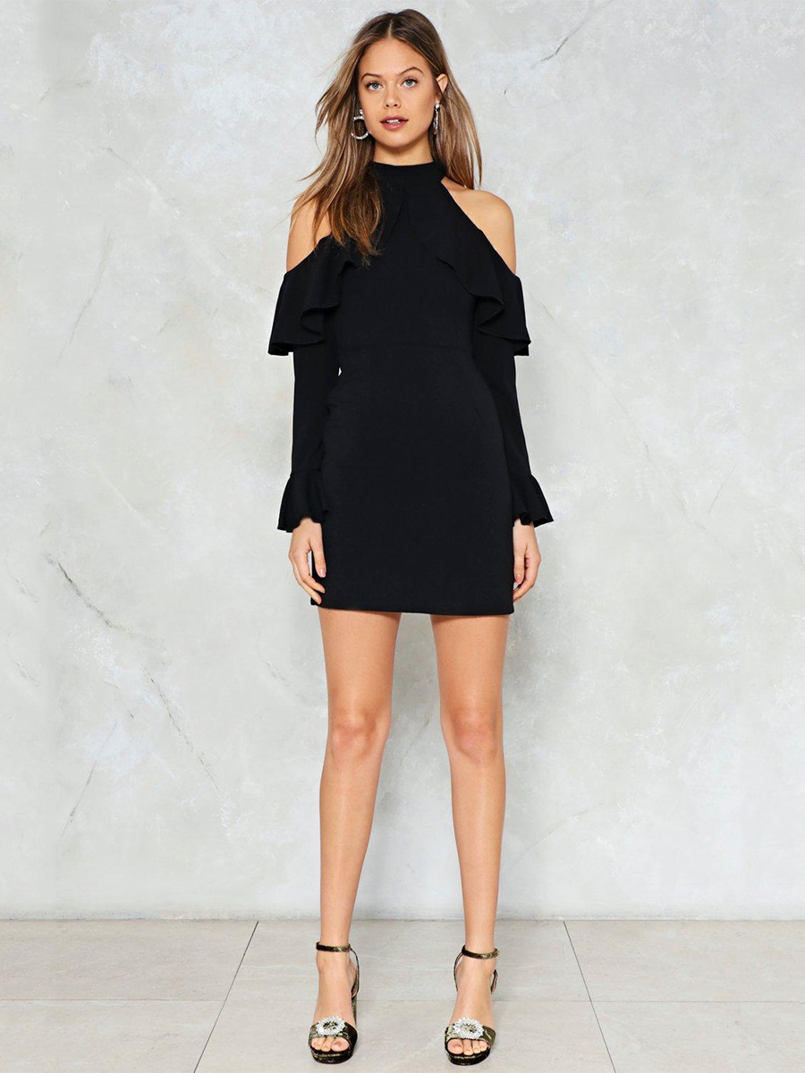 Fashion simple sexy leaking shoulder sleeves dress